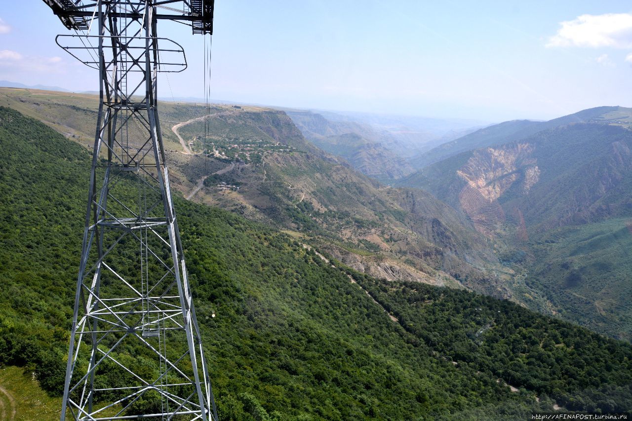 И вот последняя опора и уже видна отвесная скала на которой стоит монастырь Татев.
