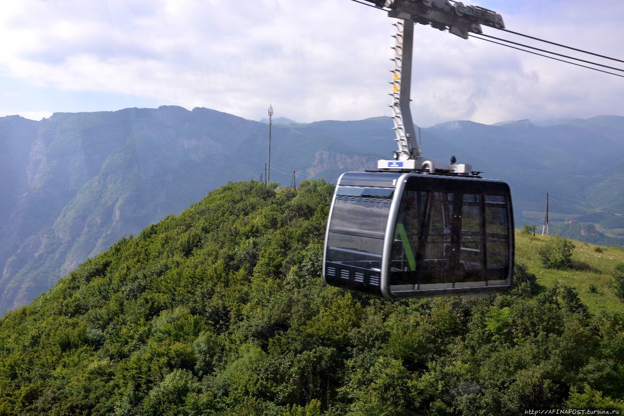 Держат канатку всего три опоры разной высоты, кабины удобные, но фотографировать через