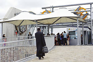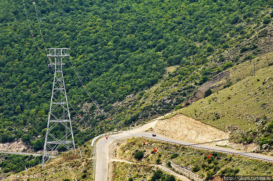 Выйдя из автобуса и получив билеты на канатку, мы встали в небольшую очередь и, прождав минут 15, оказались в вожделенной кабинке. Всего кабинок две, поэтому в каждую подошедшую набивается достаточно много народу и снимать сложно, потому что толкаться я не люблю, а все козырные места у окон сразу же занимают. Впрочем, горевать о не лучшем месте пришлось недолго, кабинка поехала и я тут же позабыл обо всех неудобствах — от открывшегося вида захватило дух и я лишь успевал щелкать фотоаппаратом.