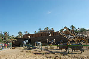 к которому дружно шли звери, каждой твари по пару ,и заходили в утробу ковчега. Мы тоже пошли по их следам . Животные в ковчеге размещались в несколько ярусов. Несколько непонятно — на улице скульптуры , хотя и палимы жарким солнцем, но целые, а в ковчеге облупленные, у кого-то частей тела не хватает.После ковчега попадаем в зал, у входа в который сидят египетские фараоны,