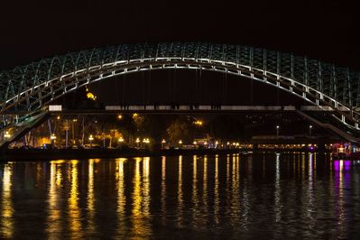 Современный и экстравагантный мост Мира — сооружение талантливого итальянца Микеле де Лукки, сделанное из металла и стекла. Мост соединяет берега Куры и особенно красиво выглядит в ночное время суток, когда на нем включается подсветка.