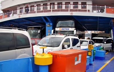 как нас направили на погрузку в следующий борт. Мы въехали первыми, поэтому я не пошла назад смотреть расписание. Машины очень быстро заполнили паром, среди них были большие экскурсионные автобусы.