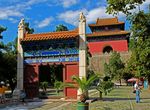 Рассмотрев и прочитав всю информацию пока наш гид-проводник покупала бимлеты, мы проходим на территорию комплекса. Впереди красивое здание — Ling'en Gate, или Ворота Великой Благосклонности.