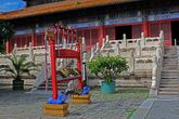 В центре зала мы обнаруживаем скульптуру того самого императора Чжу Ди, который так же имел храмовое имя Чэн-цзу и посмертное имя Вэнь-хуанди (культурный император).