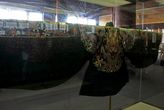 Здесь в стеклянных витринах выставлены образцы императорской одежды...