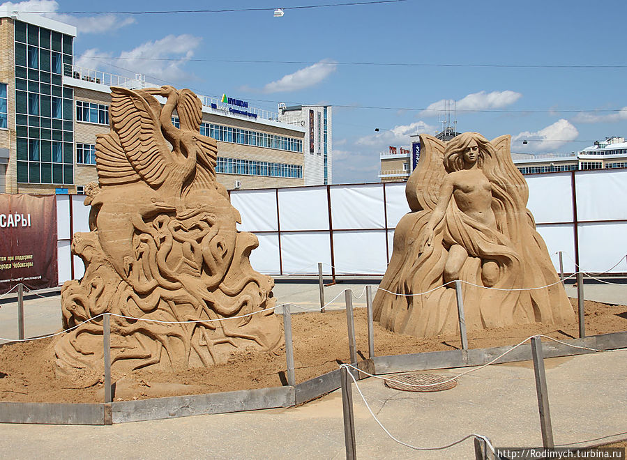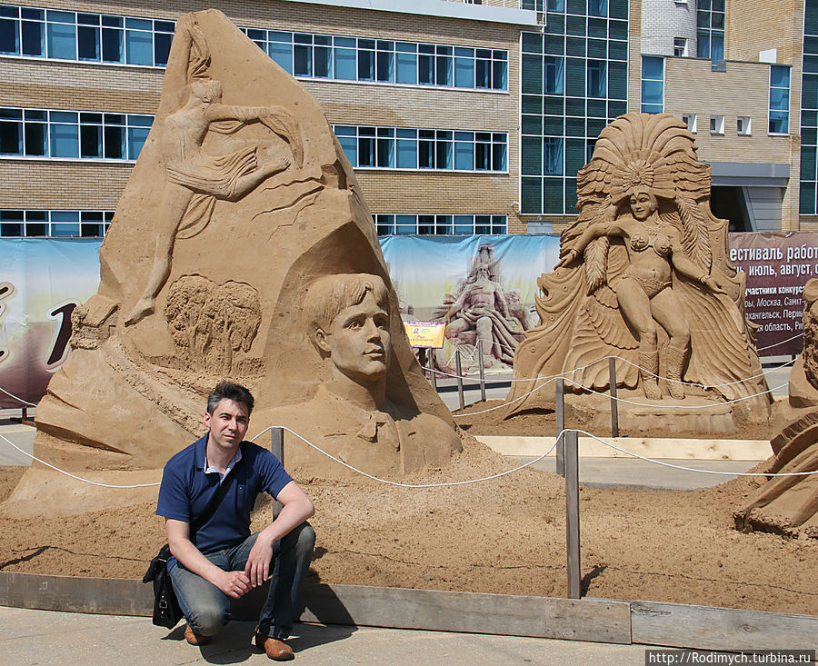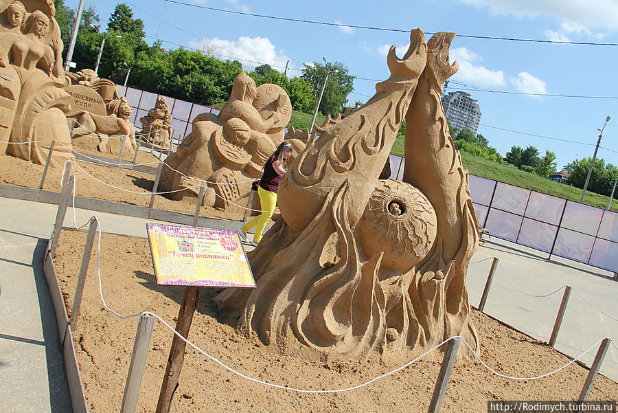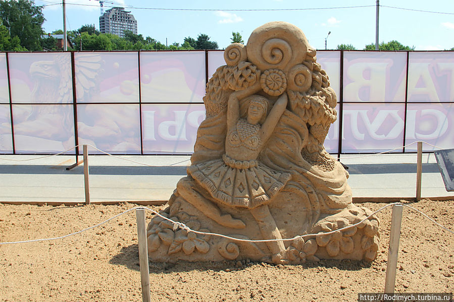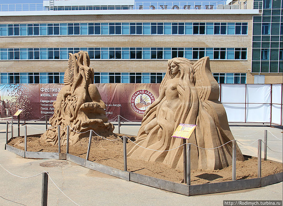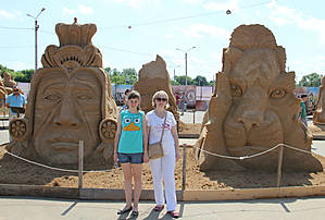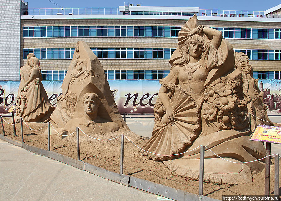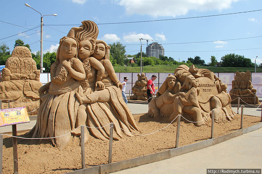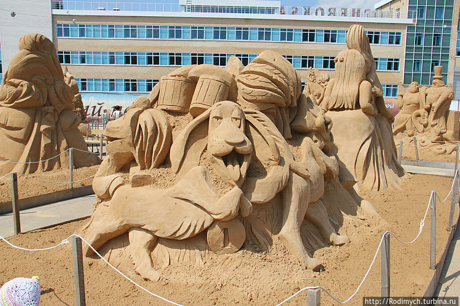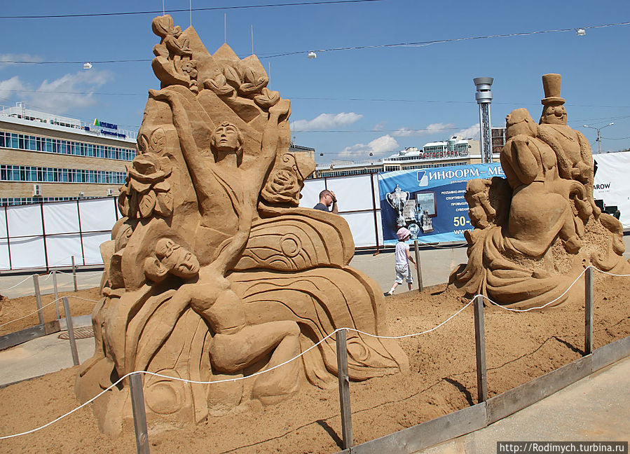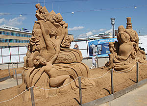 На площади за речным вокзалом проходит выставка песчаных скульптур. Довольно мило, где-то забавно. Жаль, что недолговечно.