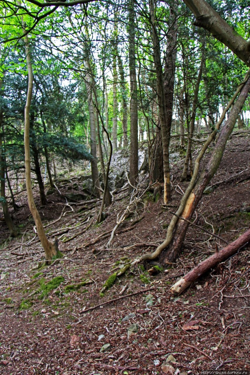 ... по тропе на лесистом склоне ущелья...