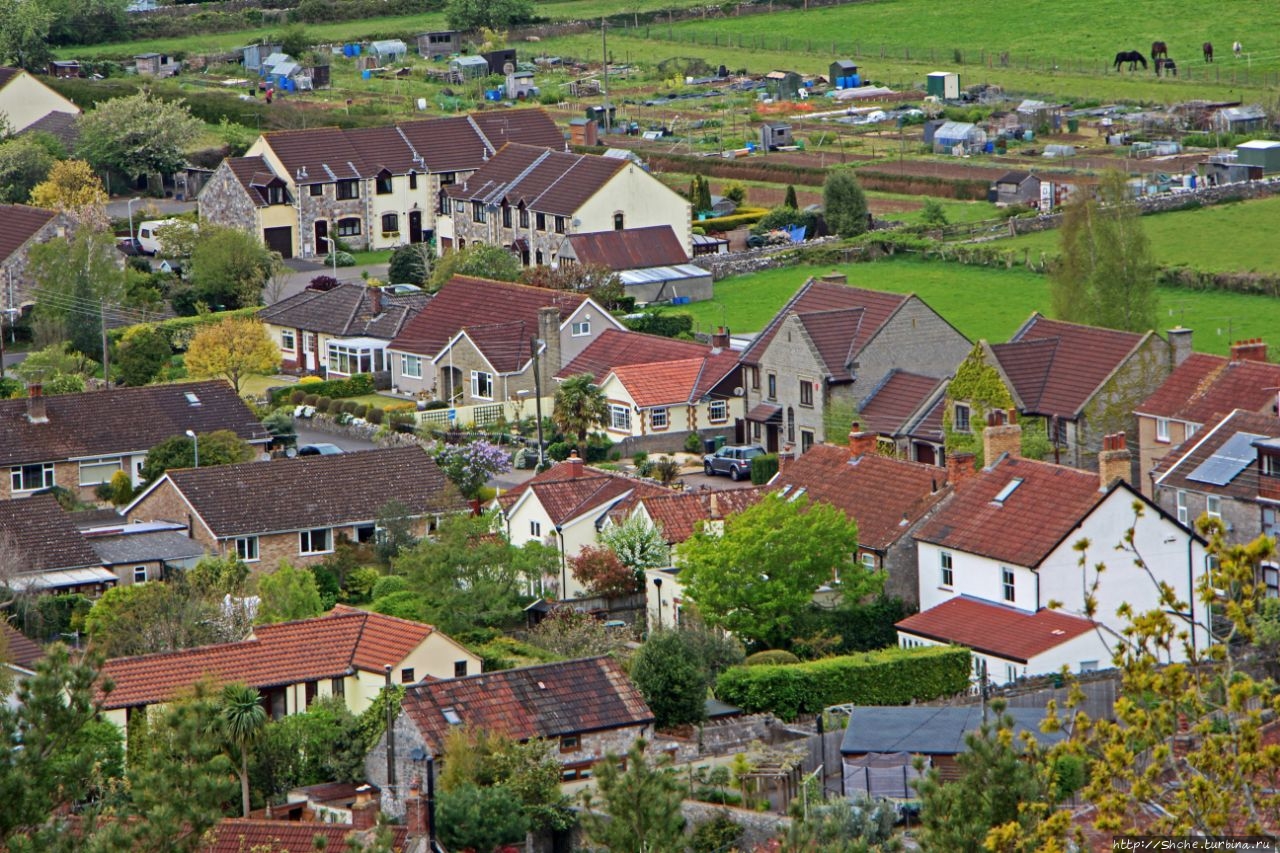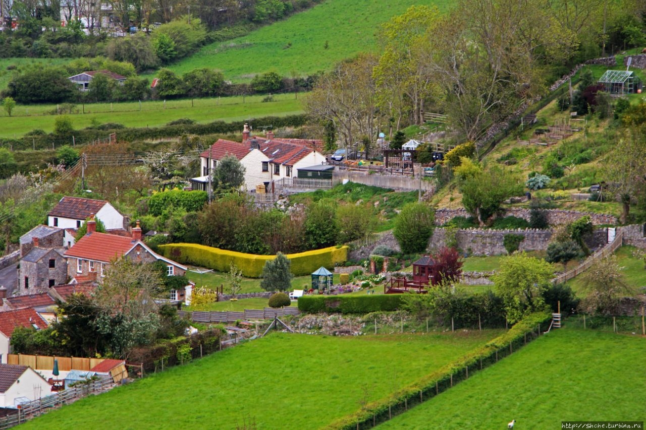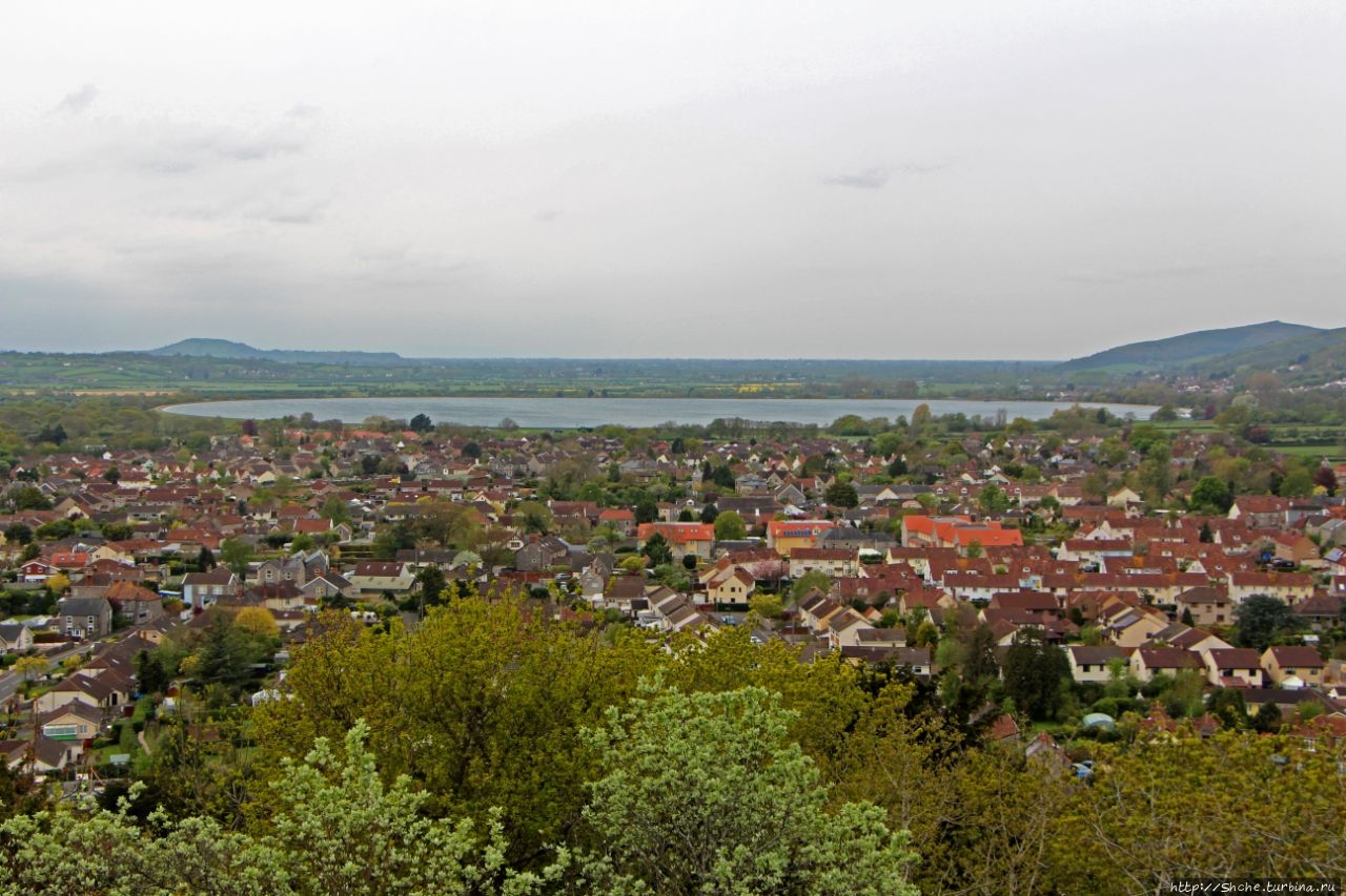 А строго в противоположной стороне городок Чеддар и его круглое водохранилище. На другой стороне искусственного озера городок Axbridge, где я снимал отель, в котором мы провели предыдущую ночь...