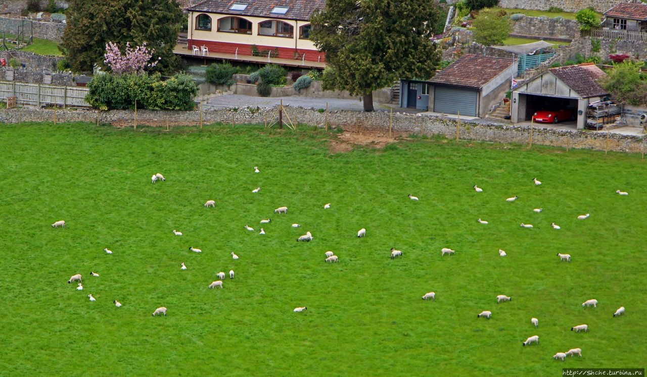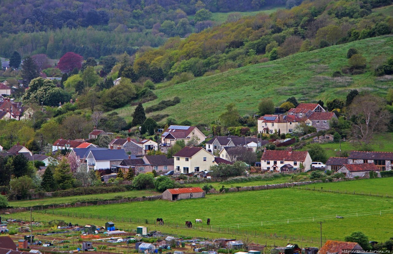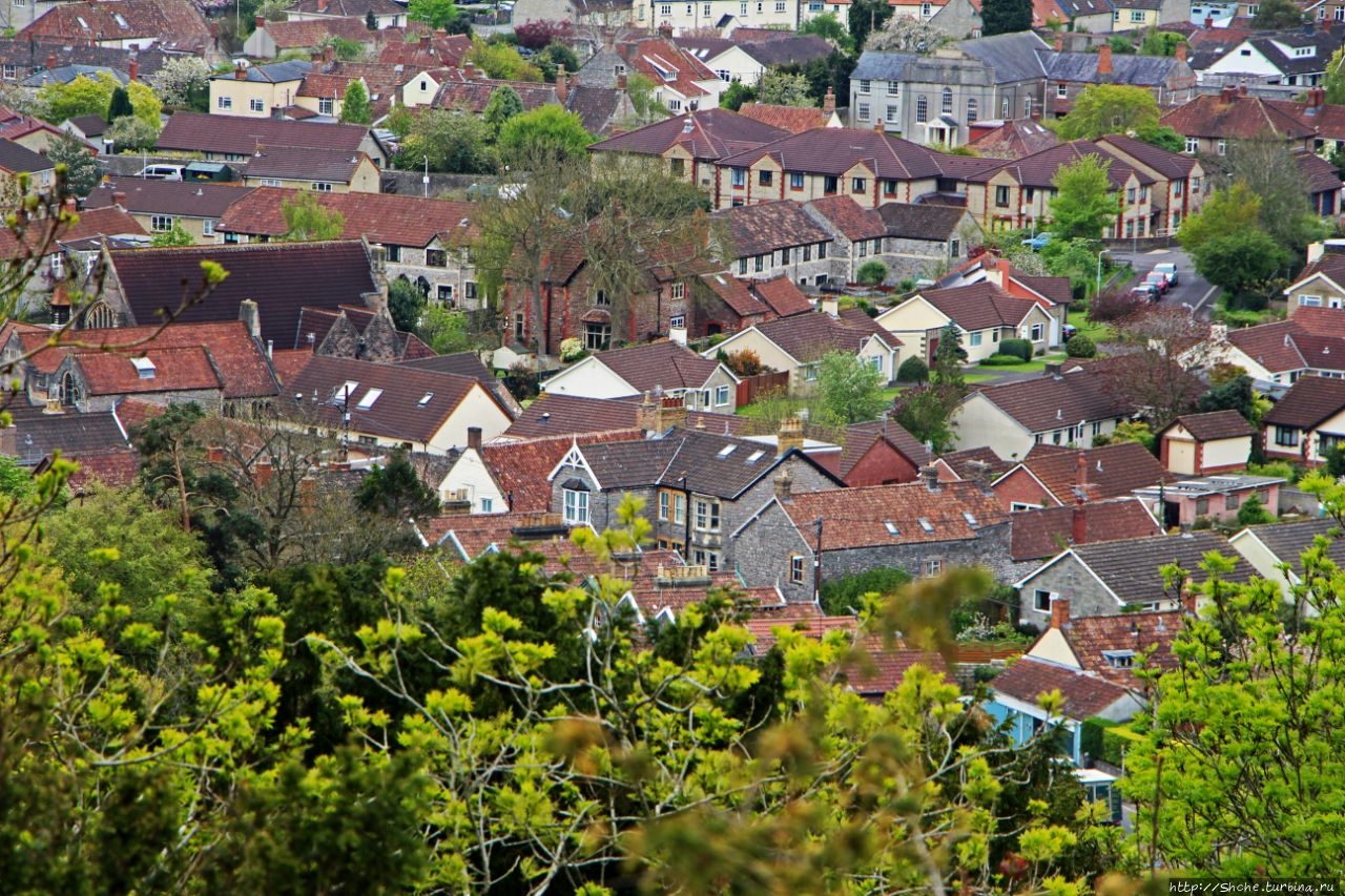 А строго в противоположной стороне городок Чеддар и его круглое водохранилище. На другой стороне искусственного озера городок Axbridge, где я снимал отель, в котором мы провели предыдущую ночь...