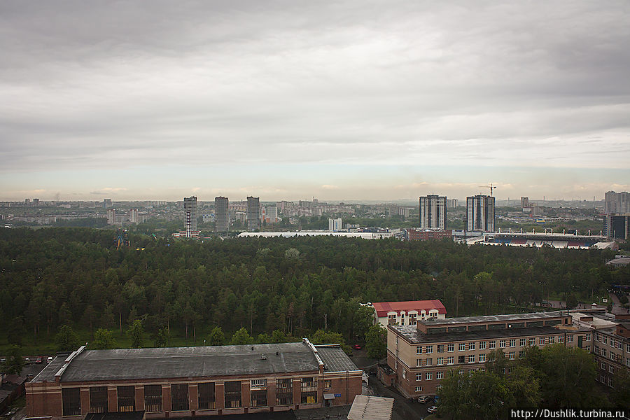 Вот такие виды открываются с крыши главного корпуса ЮУрГУ.