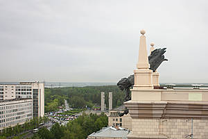 К 60-летию ВУЗа на крыше главного корпуса были установлены две медные скульптуры, выполненные в неоклассическом стиле.
