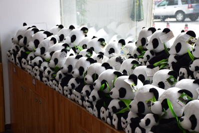 Рядом с парком небольшой квартал с исторической застройкой. Сувенирные лавки и куча еды. Большой магазин с огромным отделом, где все сувениры (плюшевые игрушки, магниты, статуэтки и пр.) посвящены Большой Панде, символу провинции Сычуань, Китая и Всемирного фонда дикой природы (WWF).
