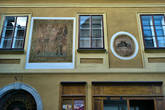 А по Латрану впереди дом №39 со знаменитым Рожмберкским всадником. В середине XVI века дом был отремонтирован и украшен росписью, прославляя тогдашнего правителя — Вилема Рожмберка.