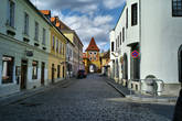 Изначально город имел девять городских ворот, но в XIX веке в ходе реконструкций были снесены все, кроме этих. Ворота построены в 1602 году и венчаются интересной пятискатной крышей. Со стороны города ворота выглядят мило, они с окошками и украшены солнечными часами, а с внешней же стороны укреплены бойницами, не сказать, что грозными, но всё же.