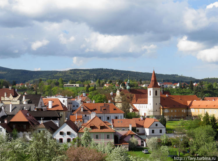 Еще один участник стандартной фотосессии в Крумлове – Kostel svatého Víta. До пражского ему, конечно, далеко, но здесь он смотрится очень органично.