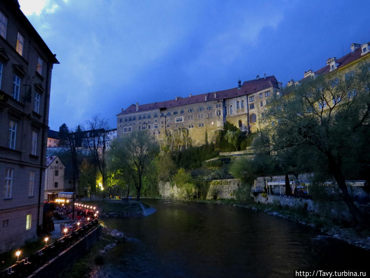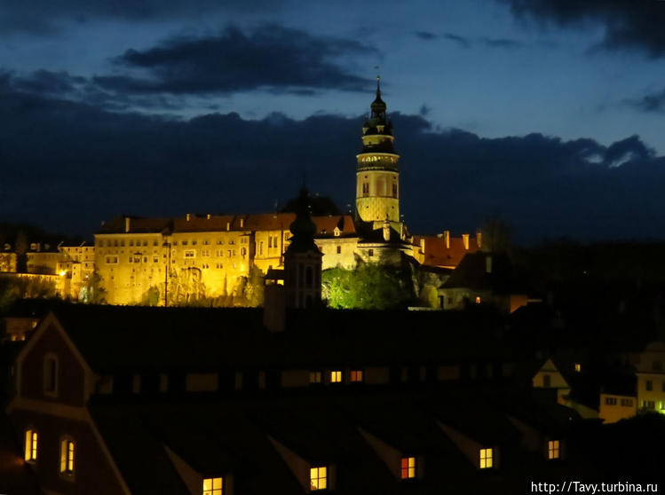 Мы остались в Крумлове ночевать. Молодцы, что остались. Вечером с улиц города пропадают туристы, зажигаются окна в домах и немного жутковатая подсветка Замка…