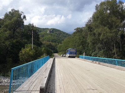 Мост через грохочущую речку Чистоводную запоминаем (около него начинается тропа на Драконы), но едем дальше в село к лечебнице. Надо найти парковку, а, если повезет, и жилье. Можно, конечно, и в машине ночевать, но не сильно хочется.