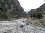 Набиваемся в кузов. Теснота жуткая. Кто сел, кто стоит, но даже просто за что-то уцепиться рукой и то проблема. Трясёмся, болтаемся на поворотах, но едем. Кое-где стоящим приходилось присаживаться. В нескольких местах на пути встречались нависающие скалы, под которыми машины высотой более 1, 8 метра пройти не могли. Грузовики с высоким кузовом в Румбур не ездят. При этом сама дорога чрезвычайно узкая и извилистая. Малейшая оплошность водителя и машина упадёт в пропасть, где требуя жертву, ревёт мощный и безжалостный поток.