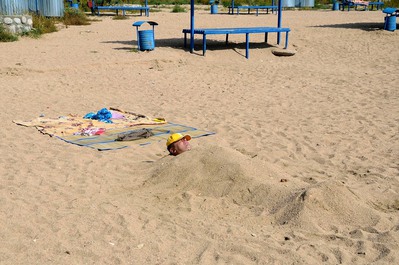 От центра Чолпон-Аты надо было как-то попасть к озеру. Сделать это оказалось не так просто. Дома идут непрерывной чередой, и проходов между ними нет. В одном месте к озеру пройти удалось, но это оказался какой-то удаленный пляж, а пройти к центру по берегу было нельзя, так как дальше был не то ведомственный санаторий, не то воинская часть. Пришлось обходить и искать новый проход.