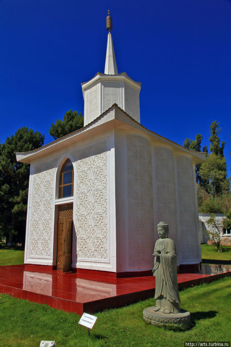 Идейный замысел культурного парка поражает своей глубиной: на территории комплекса по кругу на одинаковом расстоянии друг от друга расположено пять абсолютно одинаковых по своему внешнему виду белых часовен. Единственное их внешнее различие – это символы различных мировых религиозных конфессий, расположенные на их верхушках. Таким образом, подчеркивается равенство духовного наследия христианства, мусульманства, иудаизма и буддизма для всего человечества, их однозначность перед лицом Всевышнего и необходимость толерантного и уважительного отношения к представителям других вероисповеданий. А это Буддийская часовня