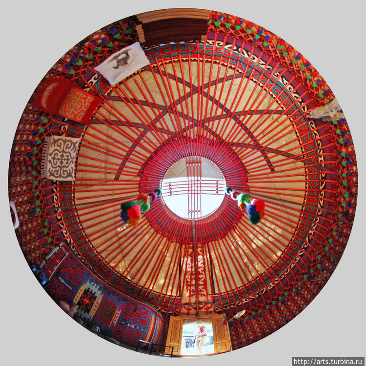 Изображение шанырака (верхнего отверстия) находится на государственном флаге Киргизии.