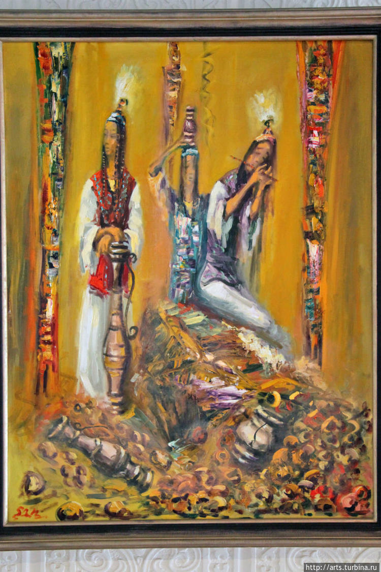 Живописная картина на холсте киргизской женщины в национальной одежде