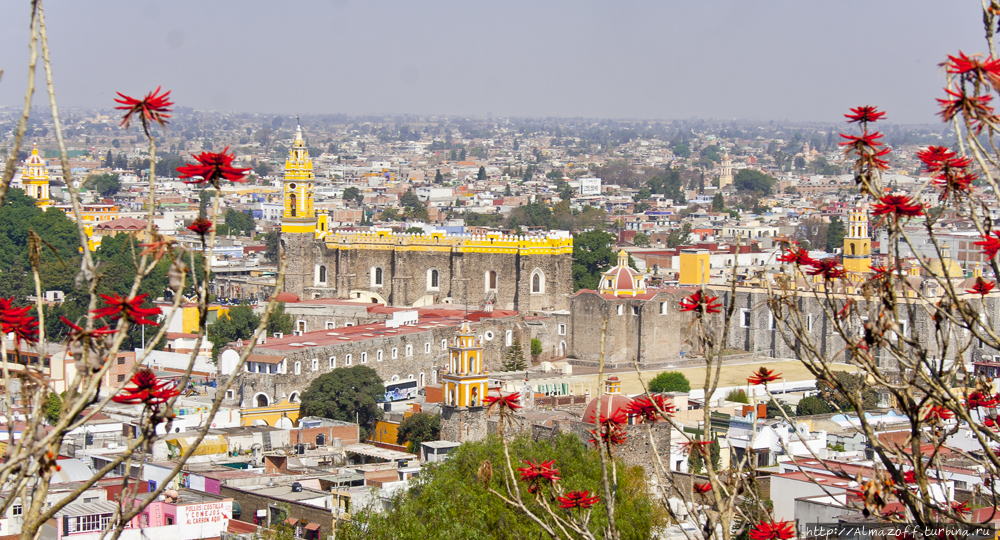 Поймали такси после завтрака и поехали в соседний городок Чолула, который известен большим количеством церквей (365 по количеству дней в году) и самой большой по площади в мире пирамидой. Недавно были открыты для посещения туннели внутри нижних ярусов пирамиды. Экскурсия платная, гид попался хороший, говорил на внятном инглише, переводить для Вовы с Палычем было легко. Рядом с пирамидой музей, особенно понравилась древняя гравюра, где собаками травят индейцев, чтобы они принимали христианство. На пирамиде в свое время приносились в жертву дети богу дождя. Служители культа напивались галлюциногенного пойла «пульке», отрезали детям головы и кидали их с вершины пирамиды вниз. Видимо поэтому в росписи храма возведенного испанцами на вершине пирамиды присутствует множество детских отрезанных головок с крылышками.