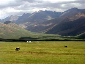 Здесь зимой всегда холодно, и даже летом дневная жара может ночью смениться на отрицательные значения. Но людей это не смущает. С весны сюда пригоняют скот, и до осени он пасется на зеленых коврах. Ведь Сусамырская долина издавна славилась своими альпийскими лугами, растянувшимися по склонам живописных пологих гор. Как там красиво! Убедитесь в этом сами, взглянув на фотографии.