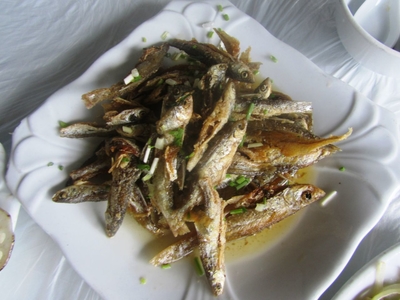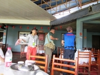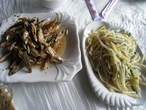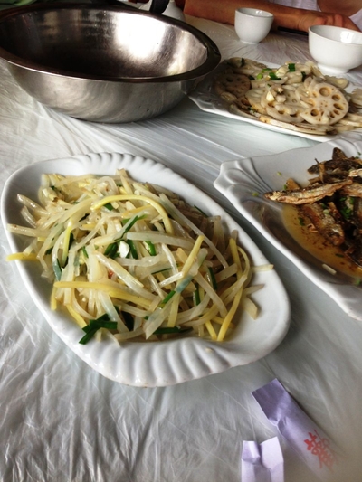 Действительность оказалась не так страшна. На обед местные кулинары приготовили суп с грибами, мясные шашлычки, жареную рыбешку, маринованные коробочки лотоса, жареную картошку, наструганную тонкой соломкой.