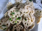 На самом деле это корни лотоса, обладающие «широким спектром преимуществ для здоровья, благодаря их богатому питательному составу». Впрочем, не ошиблась и я, потому что «корни лотоса, как следует из названия, являются частью цветка лотоса». По ощущениям они слегка напоминают нашу редьку, обладая одновременно и острым и слегка сладким вкусом. Китайцы считают корни лотоса кладезем витаминов, и нам этот салат был очень кстати для хорошего кровообращения и нормализации давления, особенно после столь интенсивных прогулок.