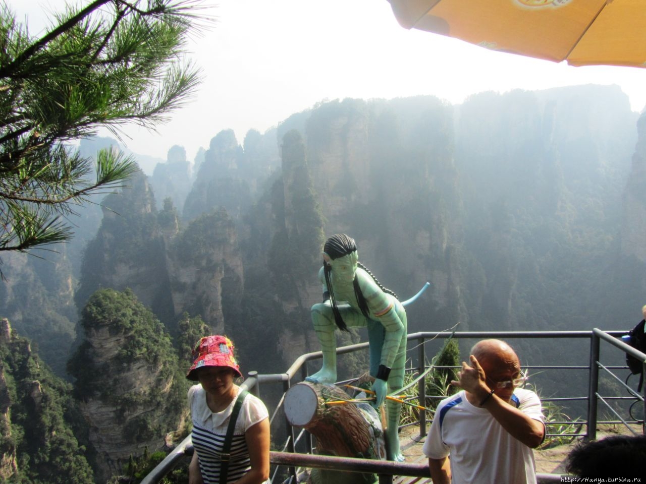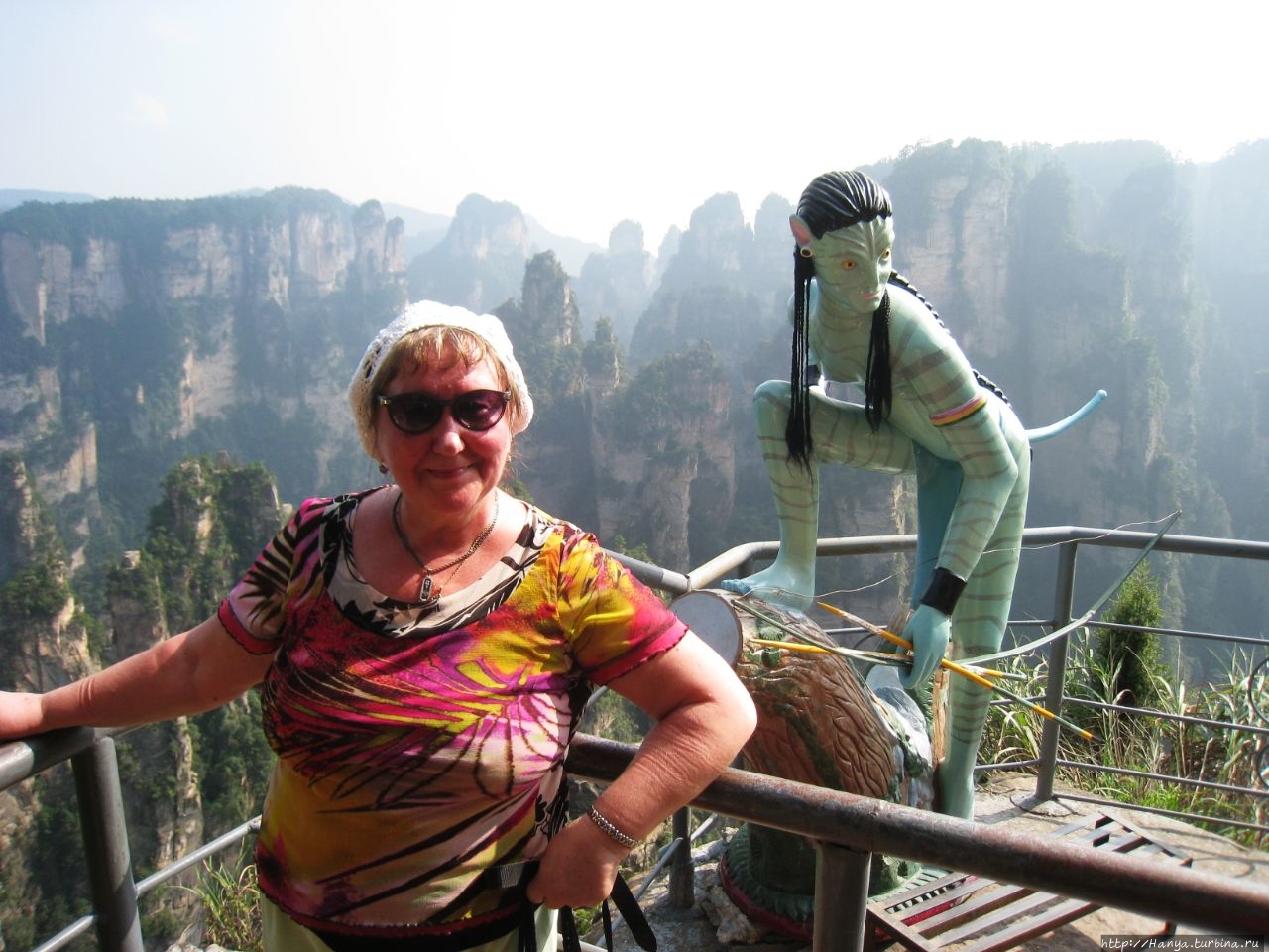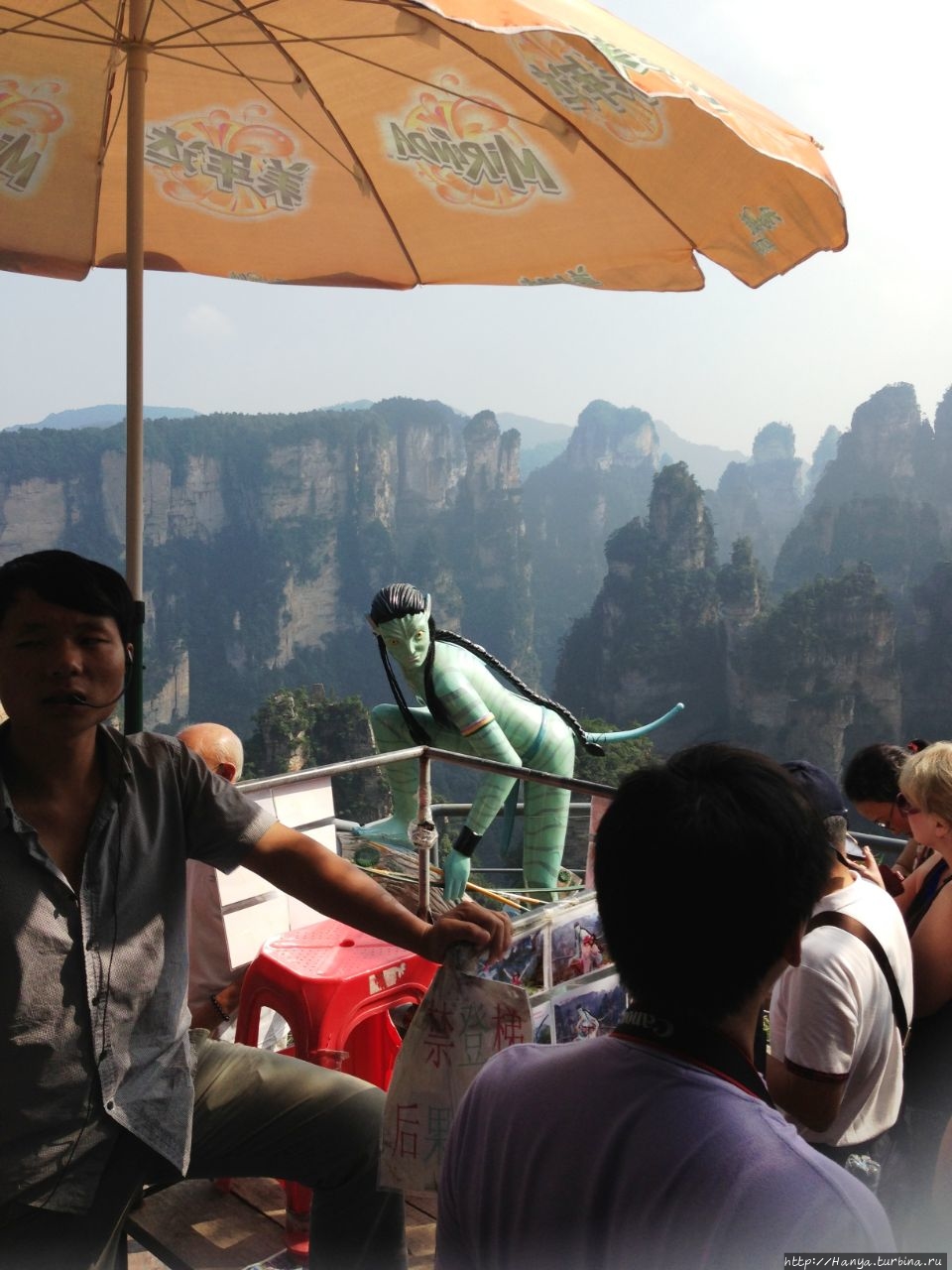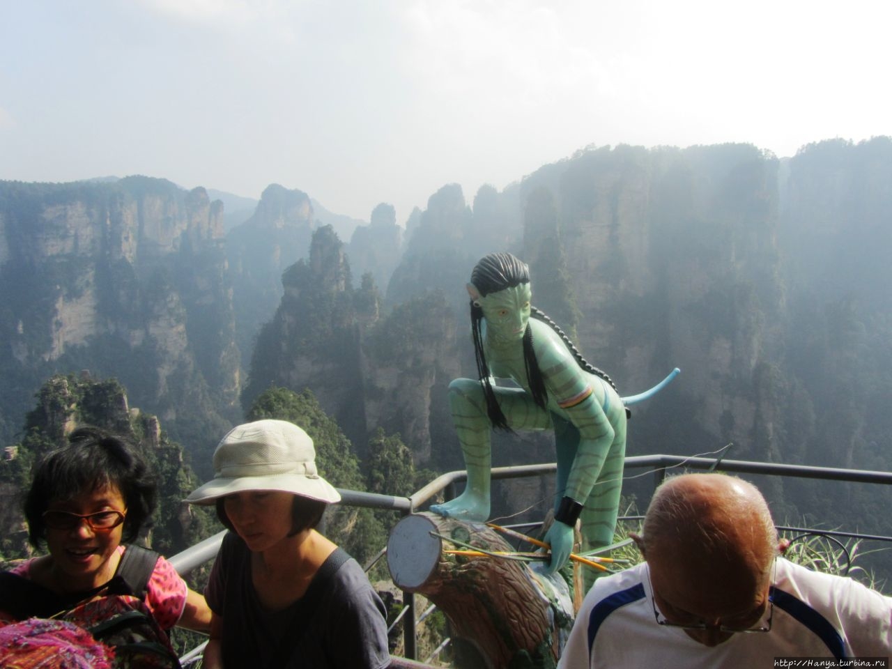 Икран – гордый орел Пандоры и его воплощение в Китае. Ч.26), а теперь идем навестить женский образ жительницы Пандоры. Ну, и если пройти чуть назад и спуститься вниз, то попадешь на площадку с многозначительным названием Enchanting Stage (Чарующая терраса), которую украшает фигурка синюшной героини фильма «Аватар» — принцессы племени Нави с планеты Пандора Neytiri. Сперва о Чарующей платформе (Mi Hun Tai), которая находится в полукилометре от Моста № 1.