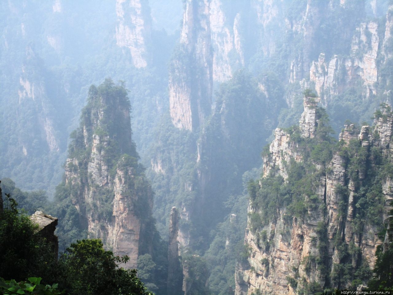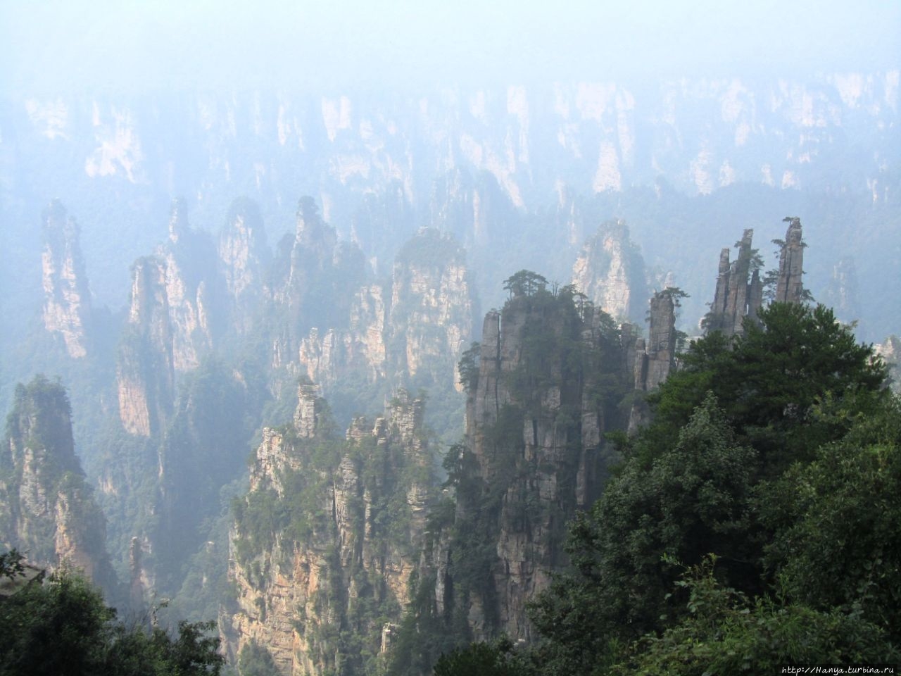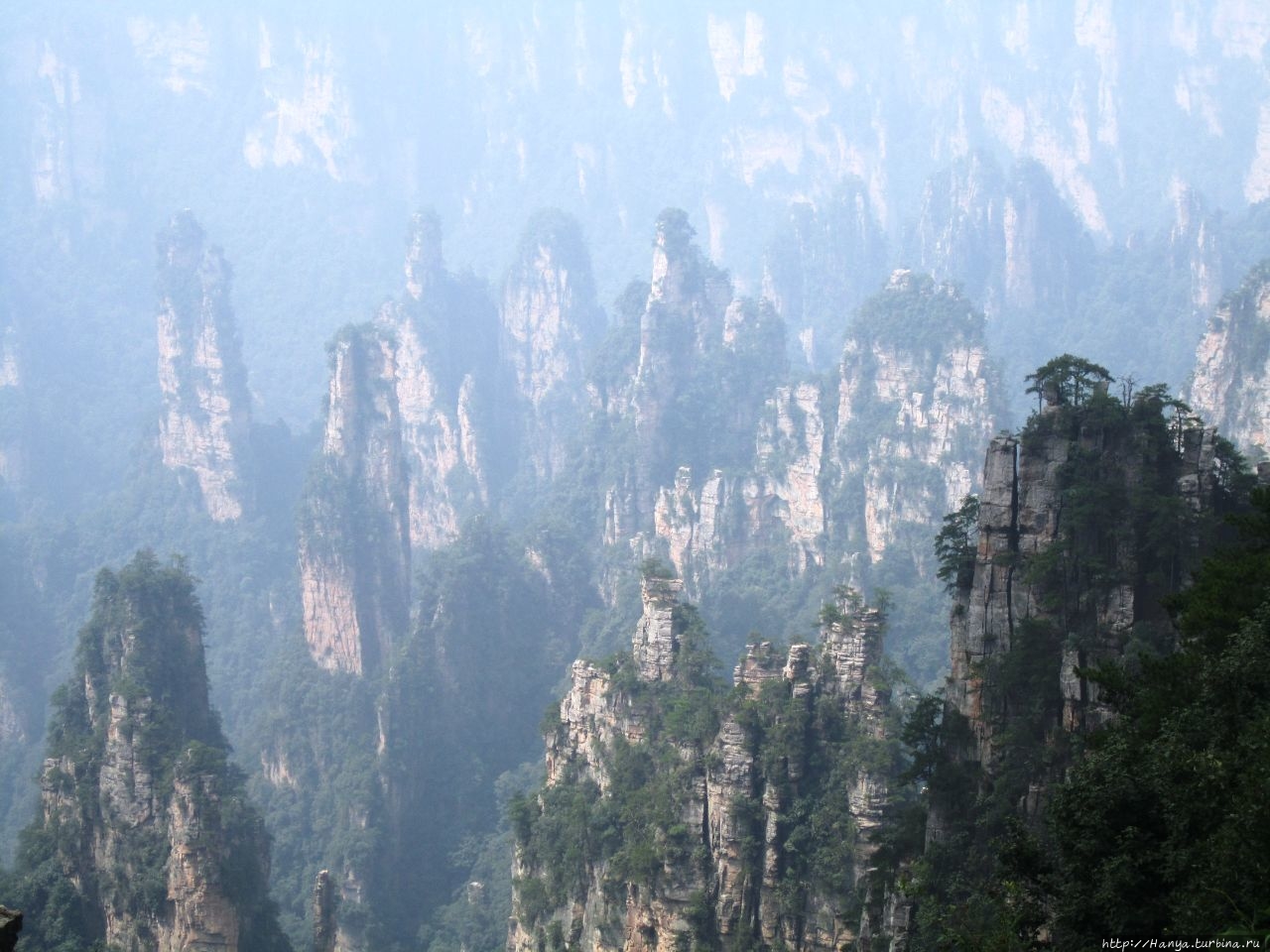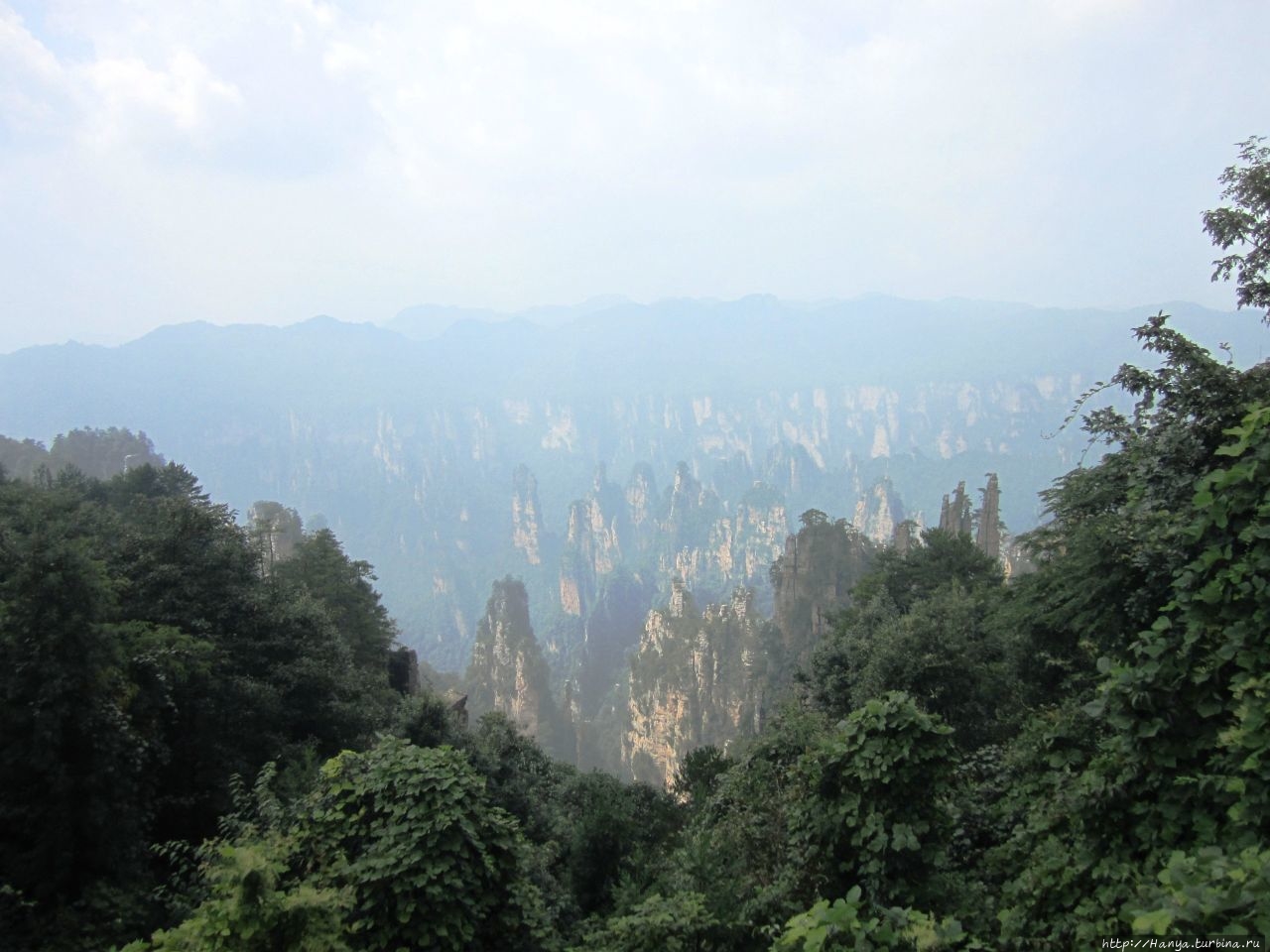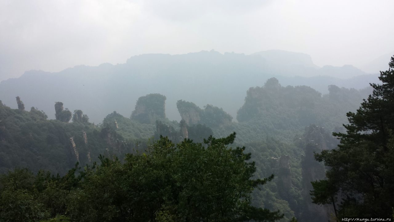 Горизонт был в призрачной пелене, глубину горных массивов также нельзя было оценить, но именно здесь это не только не мешало фото и видео-съемкам, а подтверждало истину «призрачно всё в этом мире бушующем, есть только миг, за него и держись…». Глядя на эти кварцитовые скалы, я невольно вспомнила терракотовую армию императора Цинь Шихуанди в Сиане — воины, как и пики утесов, молчаливо стоят в ряд, не повторяя друг друга и олицетворяя мощь и силу своего хозяина. И все бы ничего, если бы не галдящие любознательные жители Поднебесной, о которых не говорит только ленивый. Конечно, каждый из нас видел эти толпы китайцев по разным достопримечательностям мира, но здесь их концентрация просто зашкаливала в лакомых местах, и вели они себя бесцеремонно до такой степени, что приходилось буквально сражаться за место под солнцем, проявляя настойчивость и призывая к их разуму.