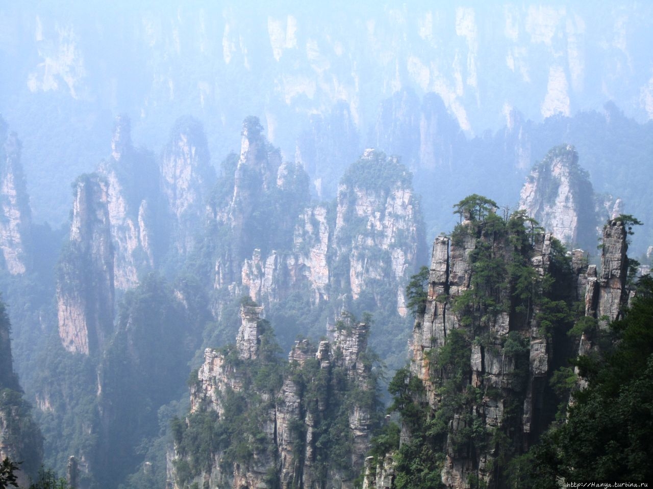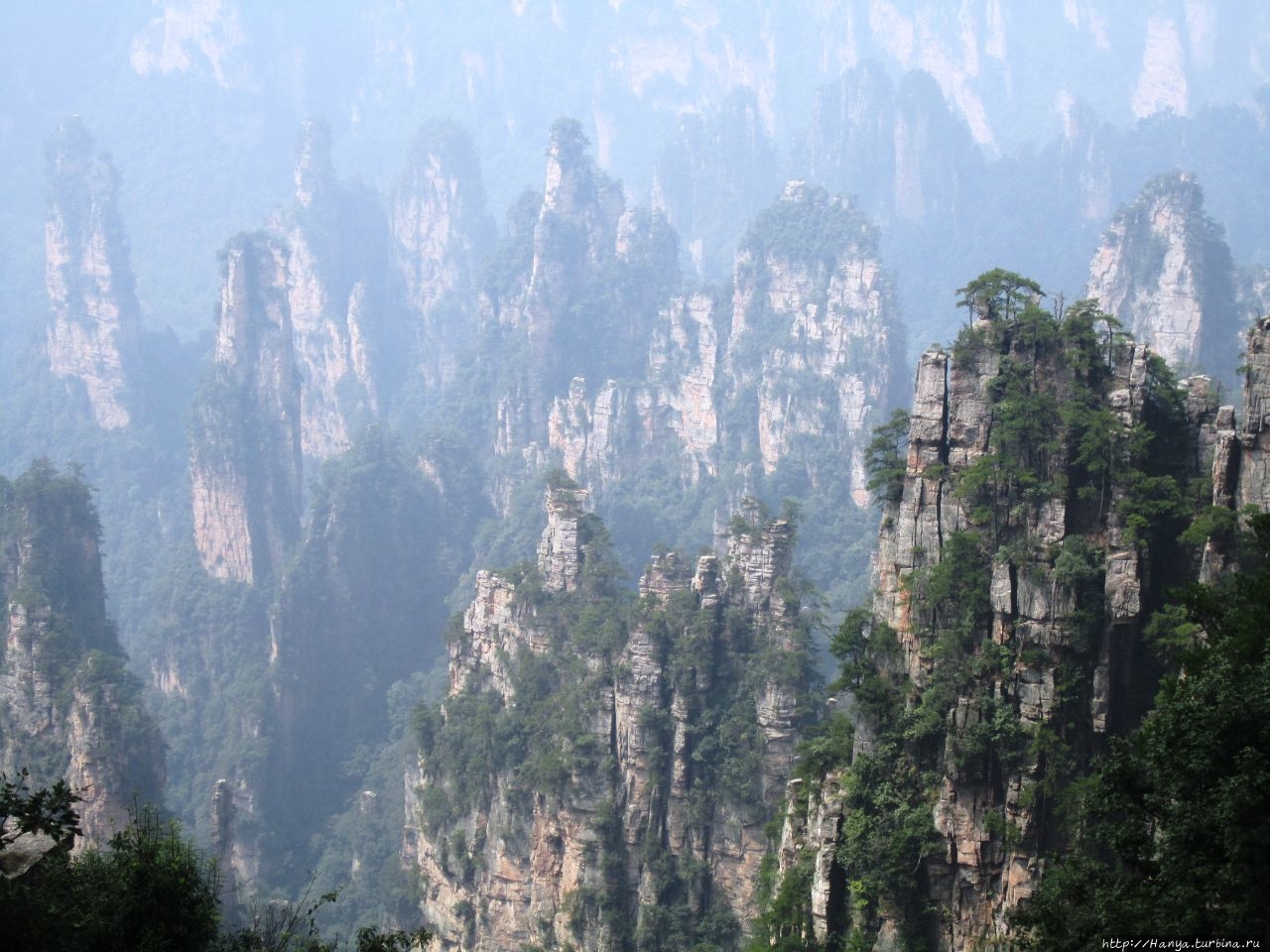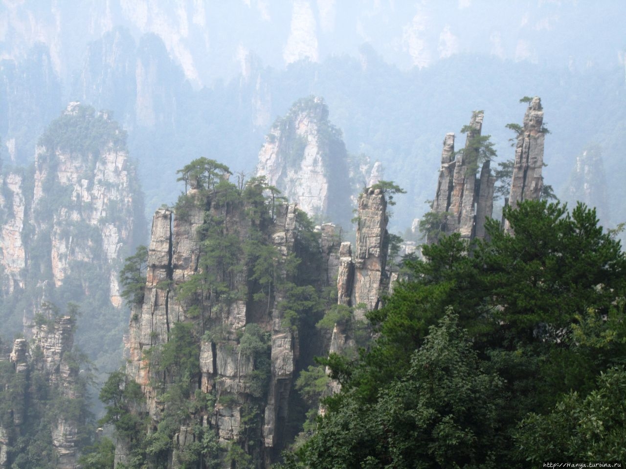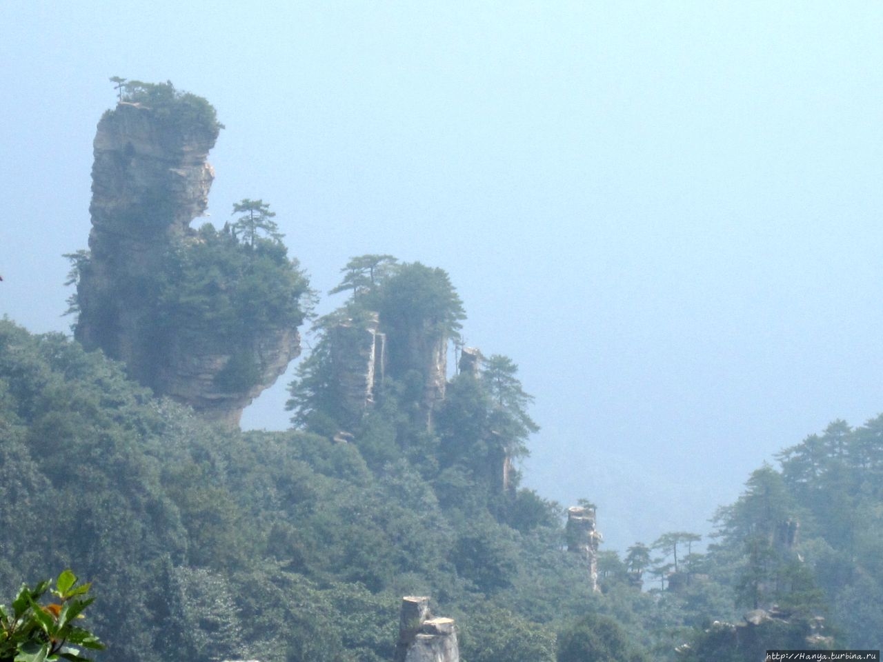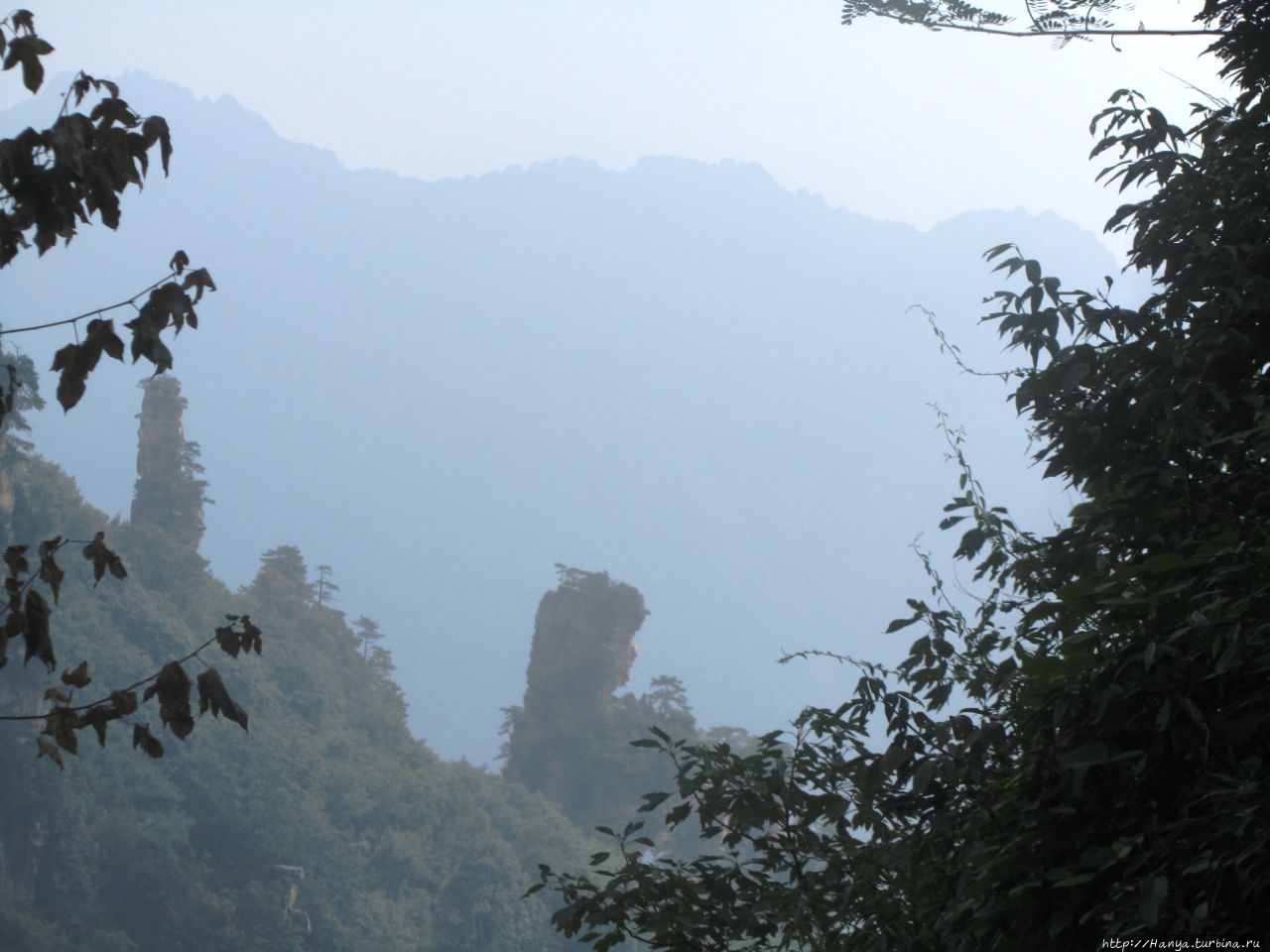 Горизонт был в призрачной пелене, глубину горных массивов также нельзя было оценить, но именно здесь это не только не мешало фото и видео-съемкам, а подтверждало истину «призрачно всё в этом мире бушующем, есть только миг, за него и держись…». Глядя на эти кварцитовые скалы, я невольно вспомнила терракотовую армию императора Цинь Шихуанди в Сиане — воины, как и пики утесов, молчаливо стоят в ряд, не повторяя друг друга и олицетворяя мощь и силу своего хозяина. И все бы ничего, если бы не галдящие любознательные жители Поднебесной, о которых не говорит только ленивый. Конечно, каждый из нас видел эти толпы китайцев по разным достопримечательностям мира, но здесь их концентрация просто зашкаливала в лакомых местах, и вели они себя бесцеремонно до такой степени, что приходилось буквально сражаться за место под солнцем, проявляя настойчивость и призывая к их разуму.