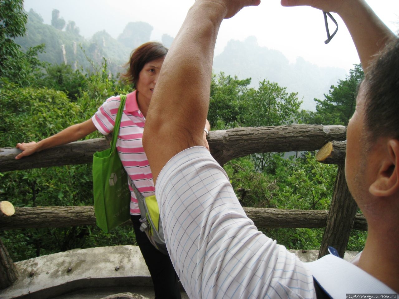 Фуникулер Tianzi Mountain, охи-ахи и обалденные ощущения!Ч19), мы готовы к осмотру Tianzi Mountain Natural Resource Reserve (Охраняемое Природное Богатство Гор Тяньцзы, Гор Сына неба). Чтобы было понятнее, объясню, что на высоте здесь находится плато среди каменных пиков. На это плато ведут фуникулер и… лифт, а также там курсируют автобусы, как и внизу. Так что даже сам путь к сайтам становится неким приключением и приобретением туристического опыта.Конкретно здесь, в природном резервате Тяньцзы, можно полюбоваться восхитительными видами, которыми пестрит весь интернет. В очередной раз убеждаемся, как все продумано, чтобы туристы могли в полной мере ощутить волшебную, чарующую красоту природы. И это выражается в обустройстве круговых обзорных площадок с «панорамным» видом на 360 градусов обзора. Сами площадки выполнены с соблюдением безопасности посетителей и ограждены железными заборчиками, которые, кстати, сделаны со стилизацией под дерево.