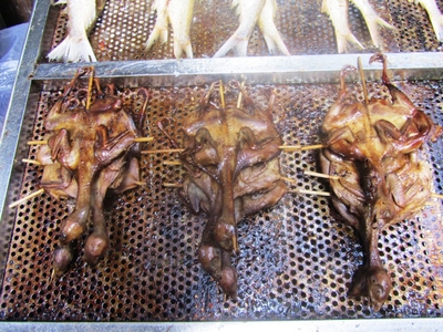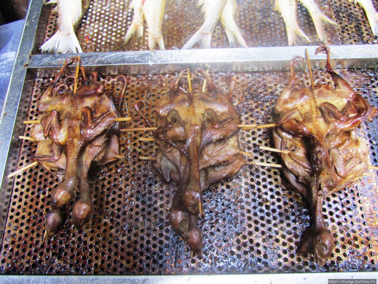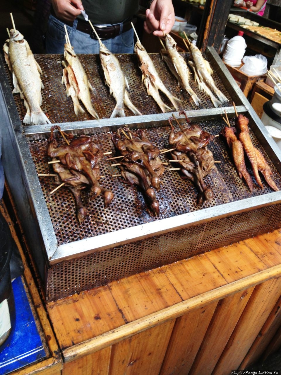 Тут же рядом с Павильоном Сына Бога (Tianzi Pavilion) можно было перекусить жареной рыбой и перепелами-«табака».