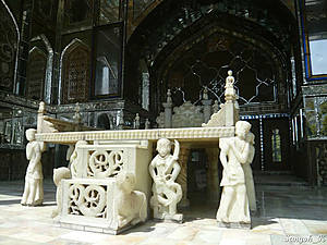 Самым интересным павильоном оказался «Зеркальный Зал». Интерьер богато украшен зеркалами, мрамором и резьбой по дереву. В зале находятся копии трона и короны, которую носил шах. Оригиналы перевезли в Сокровищницу Национального Банка Ирана. К сожалению сам зал сфотографировать не получилось.