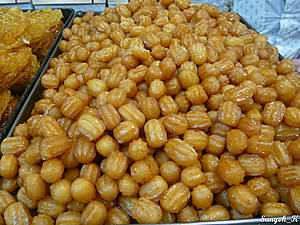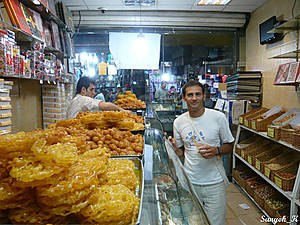 В Рамазан базар работал до одиннадцати-двенадцати дня, затем закрывался до шести вечера. Зато после захода солнца начиналась настоящая торговля. На прилавки выносили сладости из муки, яиц, меда и сахара, приготовленные специально в Рамазан: «зо́улбия» в форме кольца и «ба́мийе» в виде шариков. Запивали мы все национальным напитком – свежевыжатый сок, например, дыни подают вместе с крошеным льдом. В импровизированных столовых подавали кашу с кусочками курицы – «хали́м». Ее подают очень интересным способом: сначала накладывают кашу, затем кладут в правую часть тарелки пять-шесть столовых ложек сахара, а в левую несколько ложек корицы и еще какой-то приправы, все нужно тщательно перемешать и кушать.