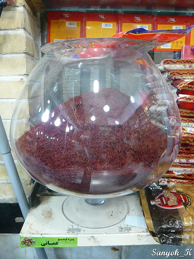 Мне показалось, что шафран в Иране любят даже слишком. Краткое историческое отступление: Клеопатра, кажется, красила им волосы, Александр Македонский смазывал шафраном полученные в бою раны, поскольку шафран является антисептиком, и еще кое-что на своем теле – шафран стимулирует любовные способности. Современная медицина также рекомендует пить шафран для нормализации давления и улучшения зрения. Поэтому эту пряность стараются по возможности как можно больше есть, пить, жевать и мазать.