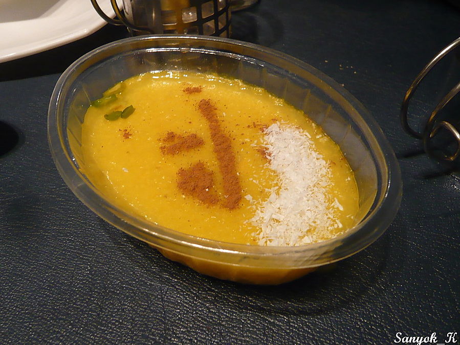 — А что это за желтая штуковина? – я показываю на баночку с с чем-то желтым, посыпанным корицей.