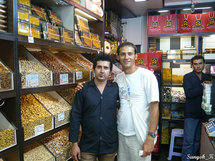 В этот вечер Рами́н организовал для меня экскурсию по базару. Восточный базар сейчас совсем не тот базар, какой рисовали на картинах двухсотлетней давности. Это обычный рынок, такой же, как Лужники в Москве. Товар, который есть у одного продавца, есть и у сотни других, более мелкие продавцы покупают товар у оптовиков, затем перепродают покупателям. В этом я не нашел ничего особенного. Конечно, на базаре продают сотни всяких экзотических приправ, но эти приправы только для нас экзотика, а для продавцов рутина – они всегда должны думать о том, как продать больше, чтобы стать богаче.
