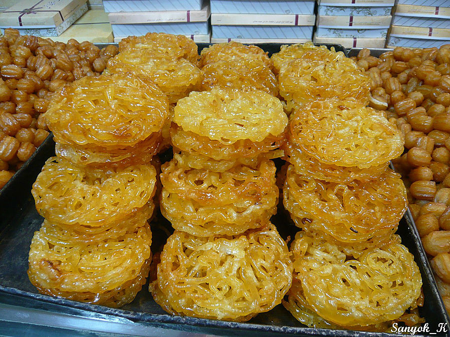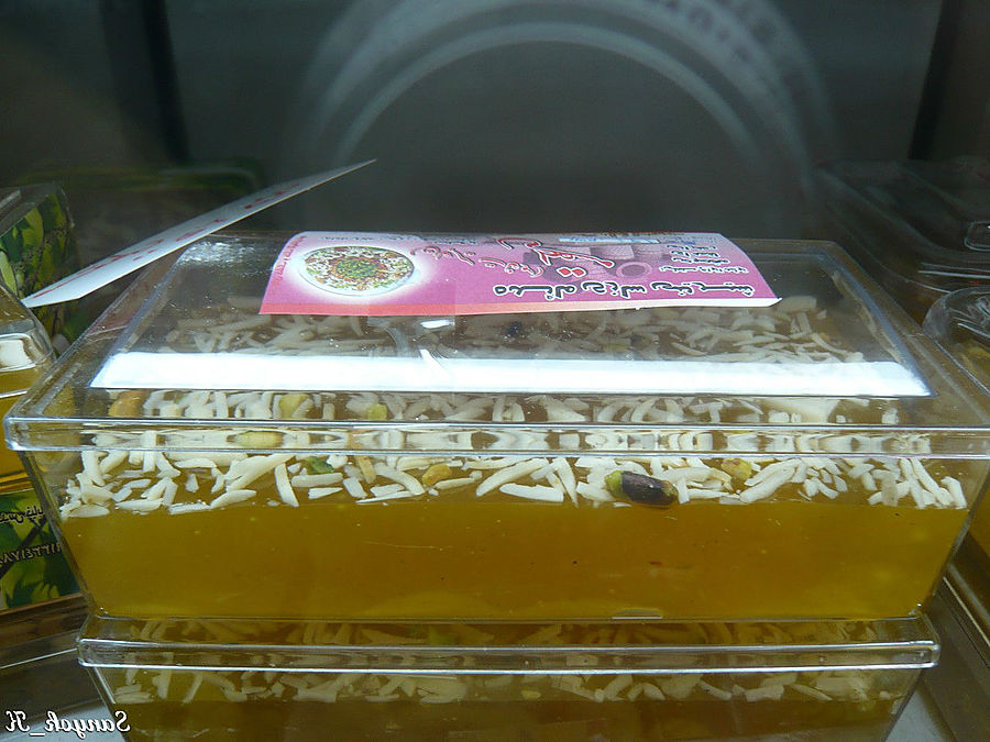 — Это наш национальный десерт — «шо́ле за́рд». А вот это тоже десерт с шафраном – «масгхати́»