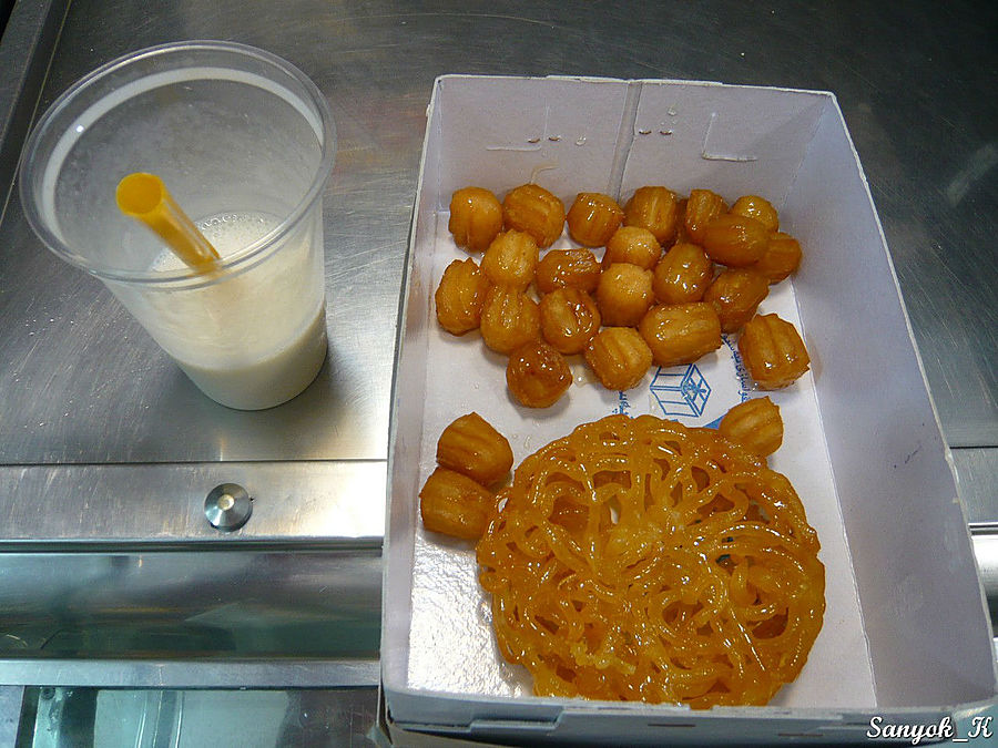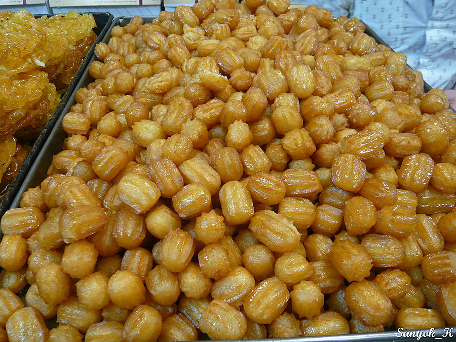 В Рамазан базар работал до одиннадцати-двенадцати дня, затем закрывался до шести вечера. Зато после захода солнца начиналась настоящая торговля. На прилавки выносили сладости из муки, яиц, меда и сахара, приготовленные специально в Рамазан: «зо́улбия» в форме кольца и «ба́мийе» в виде шариков. Запивали мы все национальным напитком – свежевыжатый сок, например, дыни подают вместе с крошеным льдом. В импровизированных столовых подавали кашу с кусочками курицы – «хали́м». Ее подают очень интересным способом: сначала накладывают кашу, затем кладут в правую часть тарелки пять-шесть столовых ложек сахара, а в левую несколько ложек корицы и еще какой-то приправы, все нужно тщательно перемешать и кушать.