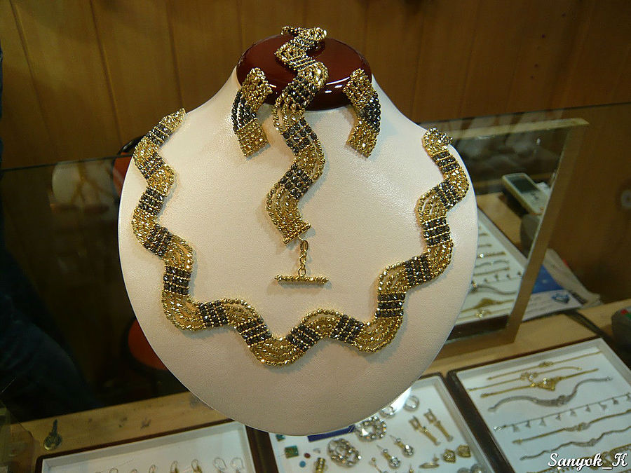 Удалось также посетить ювелирный рынок, мне показалось, что он занимает целый квартал! Никогда я не видел так много золота, ювелирные изделия здесь продают как пирожки с лотка — один продавец обслуживает десять покупателей в маленьком киоске. С разрешения хозяина я фотографирую понравившееся мне колье и браслеты и рассказываю ему о том, что в России в магазине обычно пять охранников и один покупатель, а фотографировать запрещено.