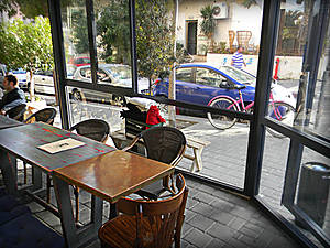 Кафе совсем небольшое, но есть места на улице, в застекленной веранде и несколько — в помещении.