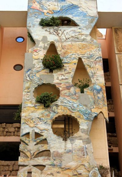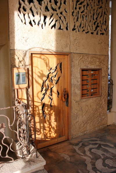 В своей квартире, единственной, не обращенной к морю, Шломит создала уникальный интерьер по своему вкусу. Стены на этажах расписаны тоже ею или по ее эскизам.