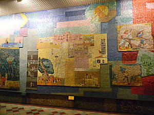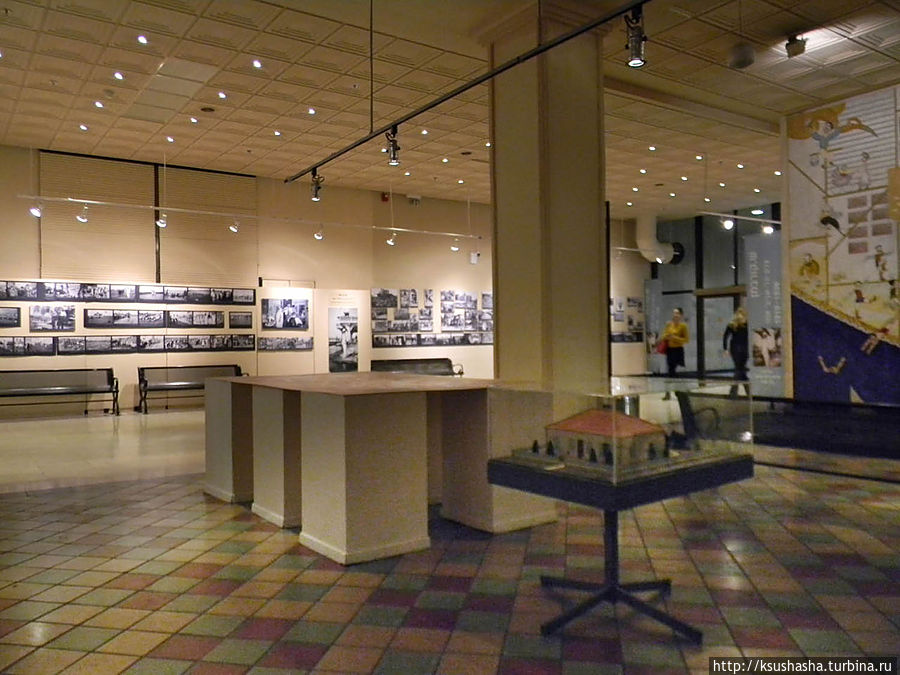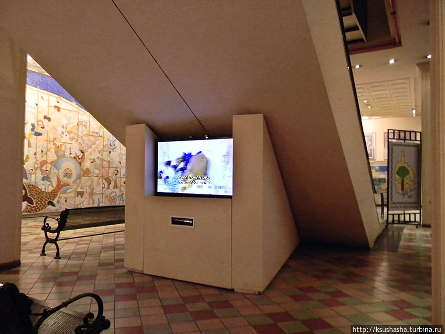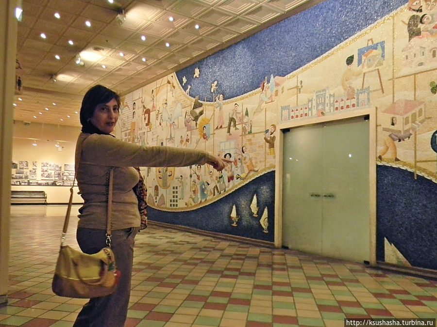 Вестибюль украшен мозаиками, посвященными истории Тель-Авива. На мозаиках есть и здание гимназии "Герцлия"(1910г), стоявшее когда-то на месте небоскрёба и снесённое ради его постройки. В центральной части галереи есть небольшая фотовыставка о строительстве здания, а также макеты в центре зала — воспроизведение старого Тель-Авива начала 10-х годов. Над домами висят флажки, указывающие их владельцев. Столько знакомых имен: дом Меира и Цины Дизенгоф, дом Акивы Вайса, дом Гутмана, дома Шалуша, дом Шенкина и многие другие.