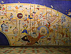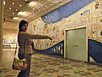 Вестибюль украшен мозаиками, посвященными истории Тель-Авива. На мозаиках есть и здание гимназии "Герцлия"(1910г), стоявшее когда-то на месте небоскрёба и снесённое ради его постройки. В центральной части галереи есть небольшая фотовыставка о строительстве здания, а также макеты в центре зала — воспроизведение старого Тель-Авива начала 10-х годов. Над домами висят флажки, указывающие их владельцев. Столько знакомых имен: дом Меира и Цины Дизенгоф, дом Акивы Вайса, дом Гутмана, дома Шалуша, дом Шенкина и многие другие.
