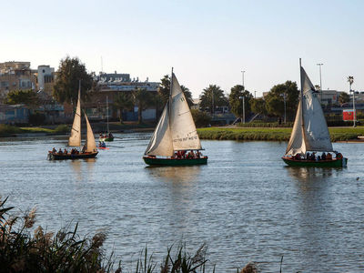 Когда послеобеденное солнышко начало медленно опускаться, мы вышли к устью реки Яркон, туда, где по берегам располагается зелёная зона парка Ха-Баним.