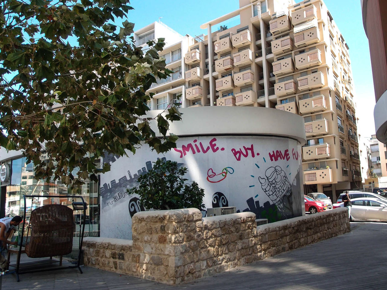 Но связь с Флорентином все же не утеряна — маленькое кафе, которое является частью комплекса, снаружи и изнутри разрисовано граффити. Правда, это граффити совсем иного рода, более художественное и стилизованное.