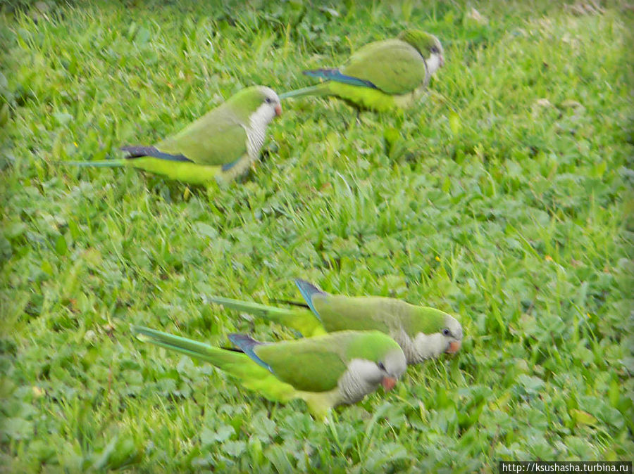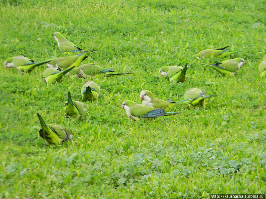 А самым большим сюрпризом стала стая диких попугаев, кормившаяся на зеленой травке. Их и заметили-то не сразу, так попугаи слились с окружающим пейзажем.